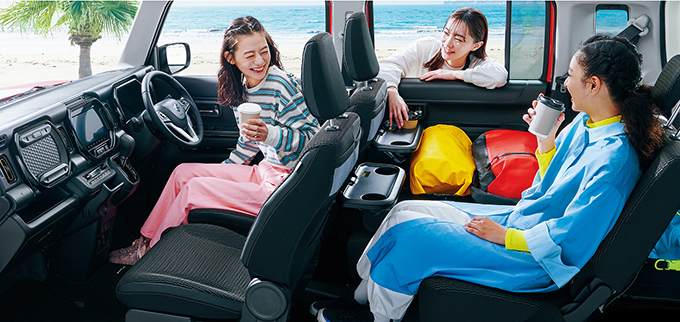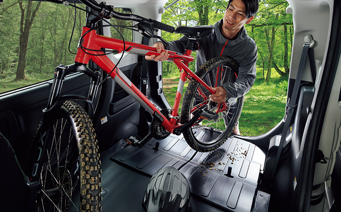 内装には防汚素材を採用し、荷物の出し入れを前提とした設計。 アウトドアや作業用途など、道具として使いやすい軽自動車です。