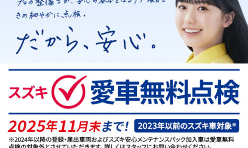 毎年大人気のスズキ愛車無料点検 11月末まで実施中です! スズキアリーナ福井北イン … 続きを読む スズキ愛車無料点検実施中!