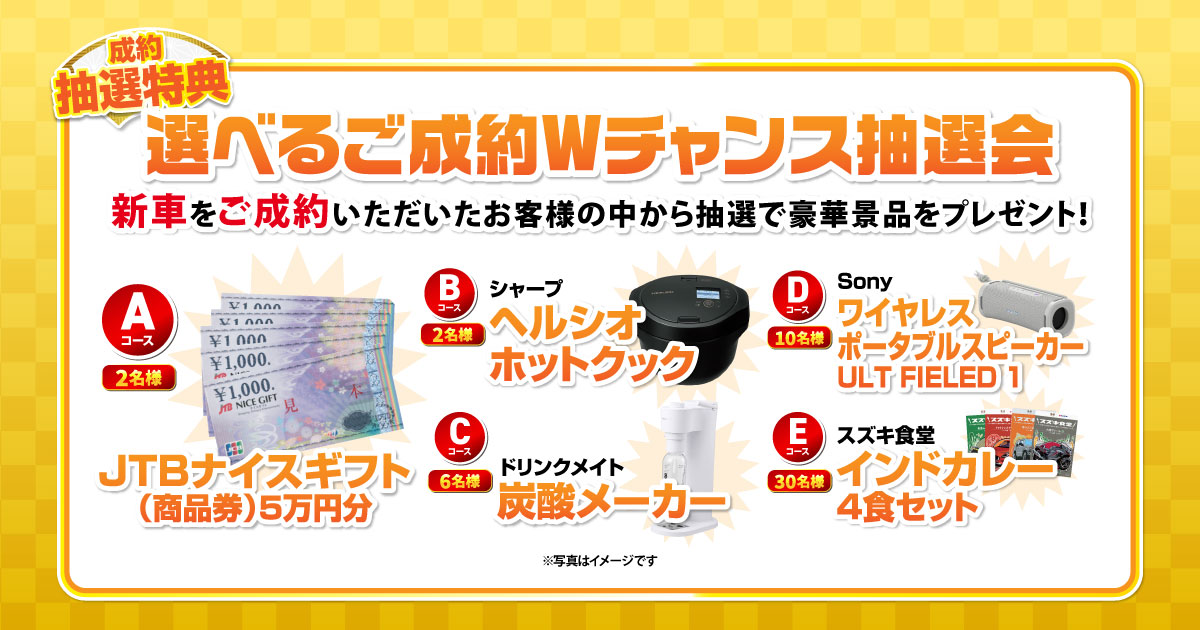 新車ご成約で、以下の中からお好きな特典をお選びいただけます!